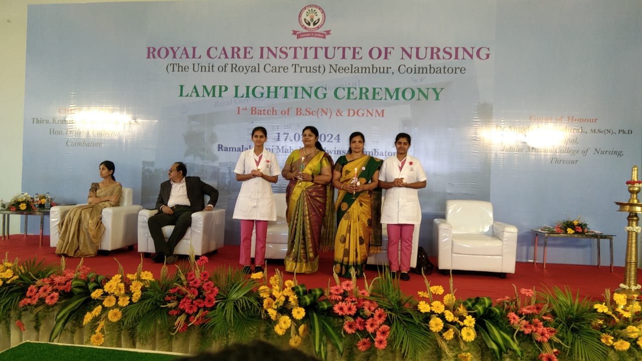 சிறப்பாக நடைபெற்ற ராயல் கேர் செவிலியர் முதலாம் ஆண்டு மாணவர்களின் விளக்கேற்றும் விழா!