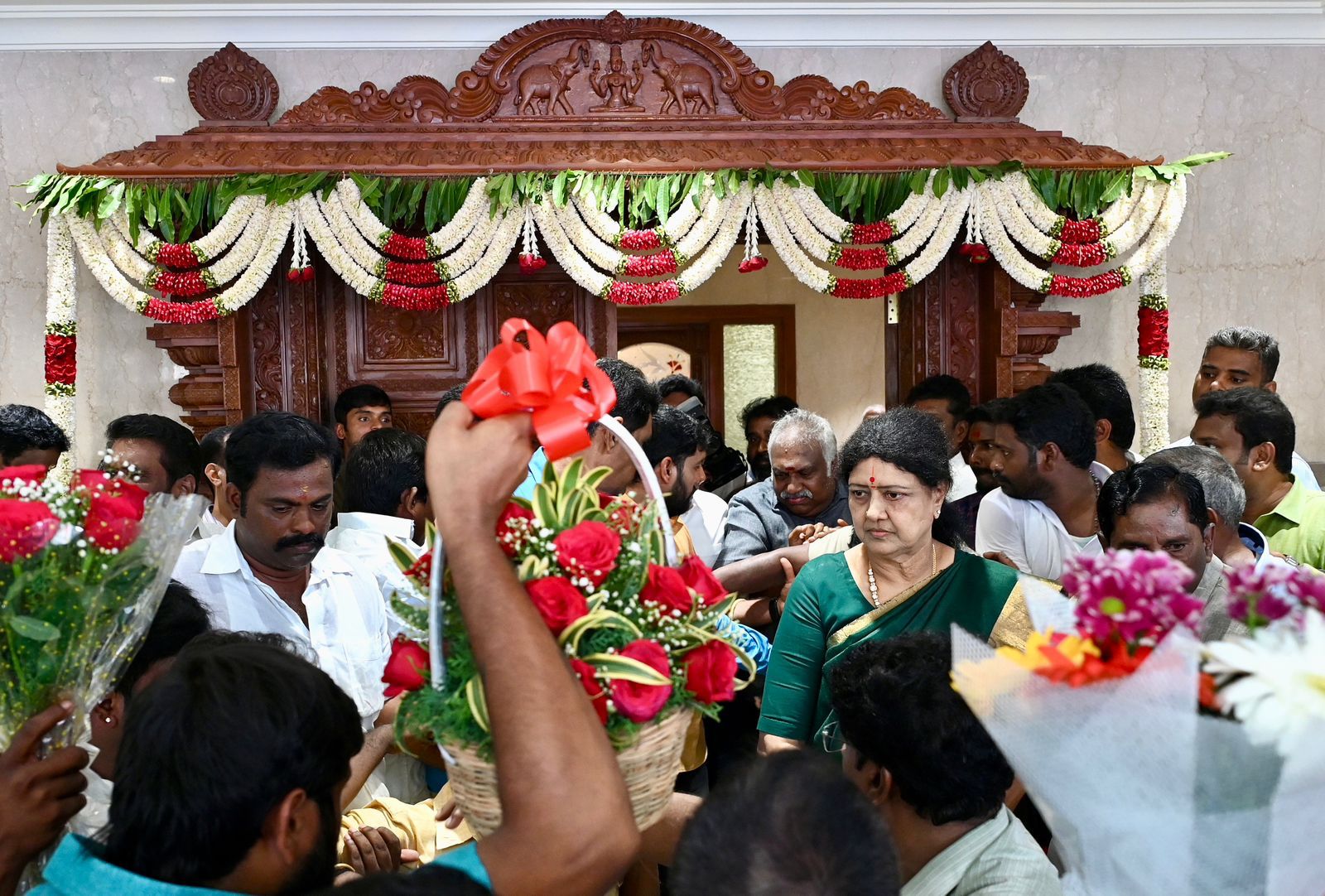 மறைந்த முன்னாள் முதல்வர் செல்வி.ஜெயலலிதாவின் பிறந்தநாளை முன்னிட்டு, போயஸ் கார்டனில் வேதா இல்லம் எதிரில் புதிதாக கட்டியுள்ள தனது வீட்டிற்கு ஜெயலலிதா இல்லம் என பெயர் சூட்டியுள்ள திருமதி. வி.கே சசிகலா, அவரது புகைப்படத்திற்கு மலர் தூவி மரியாதை செலுத்தினார். சுமார் 7 ஆண்டுகள் கழித்து மீண்டும் போயஸ் கார்டனுக்குள் நுழைந்துள்ளார் சசிகலா.