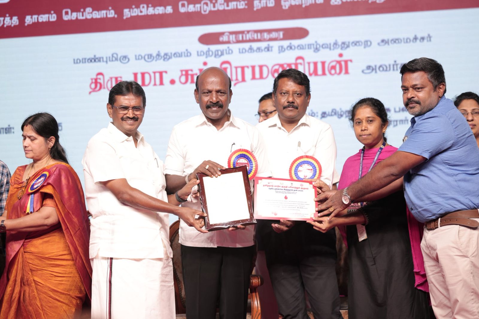 இதில் கோவையில் அதிக இரத்த தானம் வழங்கிய “தளபதி இரத்ததான இயக்கத்தின் ஒருங்கிணைப்பாளர் திமுக தீர்மானக்குழு செயலாளர் நா. கார்த்திக் அவர்களுக்கு, சிறப்பு விருது,மற்றும் பாராட்டுச் சான்றிதழை தமிழ்நாடு மருத்துவம் மற்றும் மக்கள் நல்வாழ்வுத்துறை அமைச்சர் மாண்புமிகு. மா.சுப்பிரமணியன் அவர்கள் வழங்கி சிறப்பித்தார்.